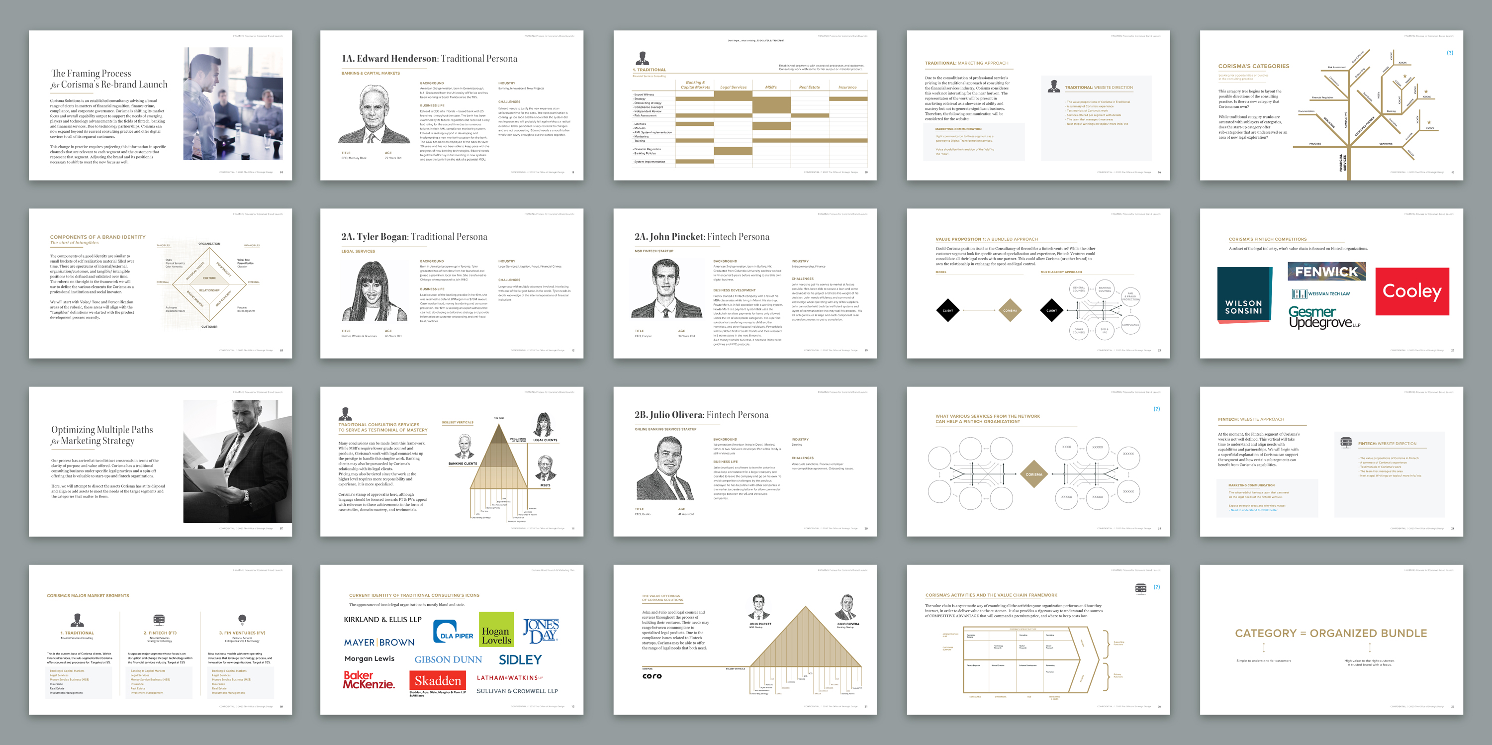 Corisma Solutions came to us during an inflection point in their business: the services of the organization were being requested by new customer segments with specific needs outside of the normal practice. Furthermore, the firm's practice was steering into new regulatory law and disruptive financial solutions by newcomers. This shift became an opportunity to re-invent the image of the organization.